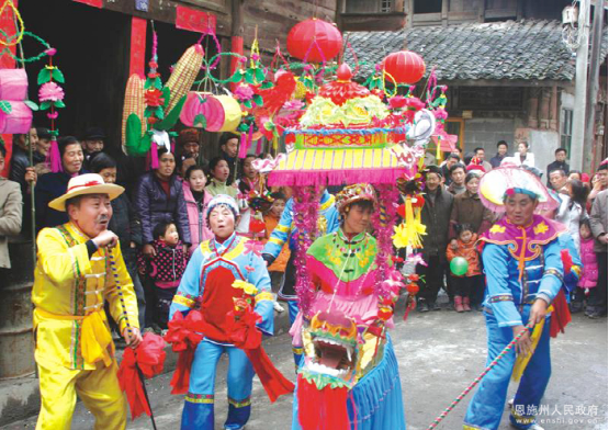 利川燈歌,又名燈調(diào),始于清代初期,已有300多年的歷史,是人們逢年過(guò)節(jié)之時(shí)以彩龍船為道具,畫地為臺(tái)、亦唱亦演的民間藝術(shù)形式。2011年5月,利川燈歌被國(guó)務(wù)院公布為第三批國(guó)家級(jí)非物質(zhì)文化遺產(chǎn)名錄。