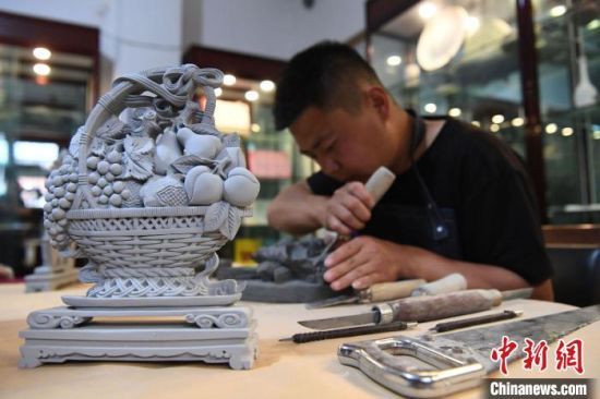 中新網(wǎng)蘭州7月29日電 (魏建軍 艾慶龍 李彬)“磚雕技藝是融入中華民族血液里面的文明?!?7歲的甘肅臨夏磚雕藝人車國棟說,時(shí)代的發(fā)展促使磚雕從最初的建筑裝飾,延伸到擺件和紀(jì)念品,更加輕便化,如此才能將非遺通過游客“帶出去”傳播文明,還能讓手藝人腰包鼓起來。