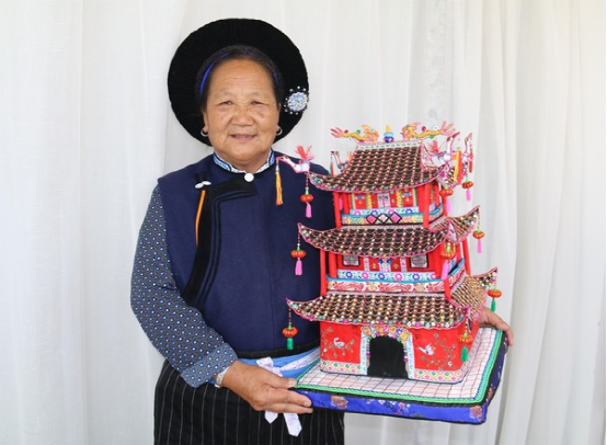 近年來,鶴慶縣高度重視民間文化遺產(chǎn)保護工作,甸南族刺繡作為民間特色文化遺產(chǎn)之一,得到較好的保護和傳承。近日,金墩鄉(xiāng)銀河村上曲江自然村71歲的老繡娘趙煥珍,經(jīng)過多次實地觀摩,邊做邊改,邊構(gòu)思邊計算,以繡花、梳花、牽花、飄花、釘花等多種刺繡方法,歷時10個多月,把縣城的地標性建筑——云鶴樓按比例縮放,創(chuàng)作出了新的刺繡作品“云鶴樓”。
