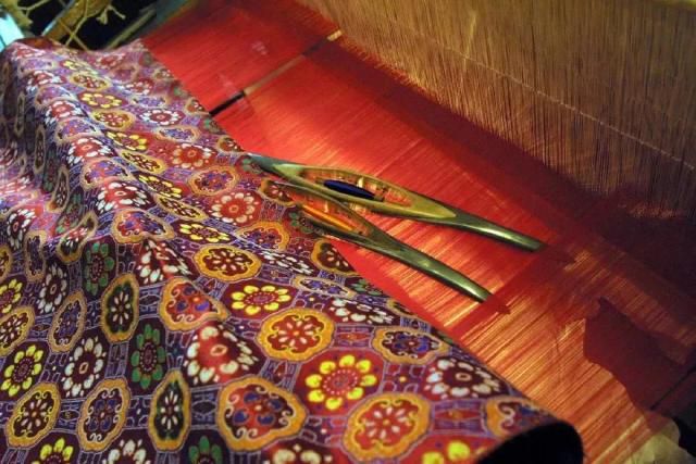 蜀錦其價(jià)如金主要體現(xiàn)在制作工藝上。要完成一件作品,從程序上說(shuō),主要需經(jīng)歷初稿設(shè)計(jì)、定稿、點(diǎn)意匠、挑花結(jié)本、裝機(jī)、織造等幾個(gè)重要過(guò)程。每一道程序又涉及到很多獨(dú)特的技藝。用蜀錦大花樓木質(zhì)機(jī)織造蜀錦,拽花工和織手須掌握多種技能。這些古代織造蜀錦的技能令人嘆為觀止。