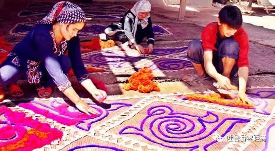 試想,一處古老的維吾爾族院落里,土質(zhì)的院墻和房子將一家人聚攏在一起,走進這家人的客廳,整潔而舒適,印花布的身影隨處可見:長條形的藍色印花布作為床圍;?一張方形的印花布被鋪在桌子上?與餐盤、茶具相互映襯,?恬靜和諧;?坐墊套、窗簾……?印花布的身影無處不在,點點滴滴地點綴著這家居室,也將女主人的心靈手巧表現(xiàn)得淋漓盡致。?這是怎樣一幅遠古家庭的生活場景???