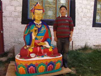 在泥塑技藝中除了面具外,佛像也是不計其數(shù),從形態(tài)上可分為喜相、怒相兩大類。“手工藝人在制作泥塑佛像時一定要按照標準進行,就像畫唐卡一樣,這些藝人要把《造像度量經(jīng)》牢記在心里,在制作時要不停默背佛像的尺寸大小,所以你看這些已經(jīng)制作好的泥塑佛像在輪廓上都是固定的,只是在一些裝飾品上有所不同。”普布次仁一邊指著身旁的泥塑佛像一邊講解道。