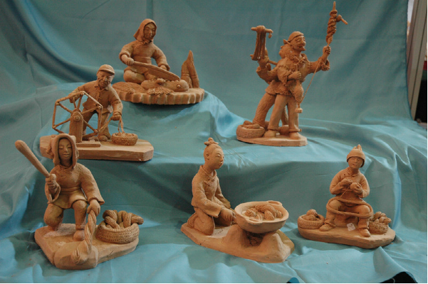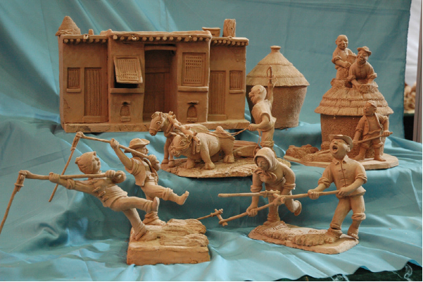 泥塑藝術(shù)是我國一種古老常見的民間藝術(shù)。它以泥土為原料,以手工捏制成形,或素或彩,以人物、動物為主。不同的民間風俗,流傳著很多動人的傳說故事,這些構(gòu)成了泥塑藝術(shù)的精神內(nèi)核。民間泥塑的用途主要有祈子延壽、納福招財、驅(qū)邪避災和裝飾擺設(shè)等。泥塑成本低,費工少,是老百姓喜聞樂見的藝術(shù)表現(xiàn)形式,它往往和節(jié)令、禮儀、風俗聯(lián)系在一起,反映的是當?shù)剞r(nóng)村人們?nèi)粘I畹牟煌瑘鼍?,人物栩栩如生,場景鮮活生動。