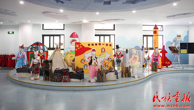 同一天下午,一場精彩的T臺秀在上海市閔行區(qū)梅隴鎮(zhèn)弘梅小學(xué)上演。小學(xué)生們身著民族服裝亮相,動感的音樂、精彩的表演,將“民族團(tuán)結(jié)一家親”的理念演繹得生動活潑。學(xué)校布置的民族文化墻上,展示了我國56個民族的風(fēng)土人情,營造了多姿多彩的民族文化氛圍,讓民族特色文化陪伴在學(xué)生身邊。