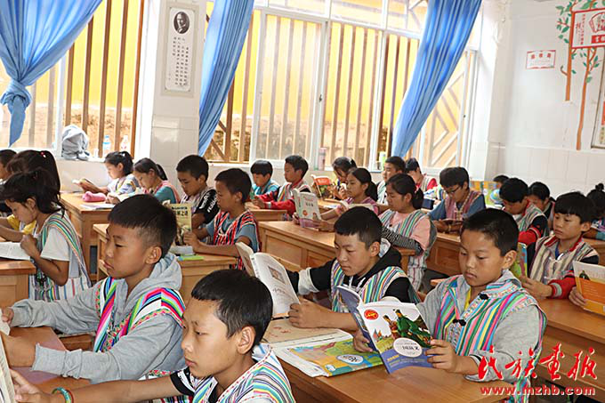“對(duì)于一個(gè)在北平住慣的人,像我,冬天要是不刮大風(fēng),便覺得是奇跡;濟(jì)南的冬天是沒有風(fēng)聲的?!弊哌M(jìn)學(xué)校初中部,朗朗書聲立即傳入耳中,七年級(jí)一班學(xué)生正在老師的帶領(lǐng)下大聲朗讀我國(guó)著名作家、劇作家、小說(shuō)家老舍創(chuàng)作的散文《濟(jì)南的冬天》。獨(dú)龍江九年一貫制學(xué)校校長(zhǎng)楊四洋對(duì)記者說(shuō):“習(xí)近平總書記曾深刻指出:少數(shù)民族學(xué)好國(guó)家通用語(yǔ)言,對(duì)就業(yè)、接受現(xiàn)代科學(xué)文化知識(shí)、融入社會(huì)都有利。所以我們學(xué)校從成立之初就開始推行國(guó)家通用語(yǔ)言文字教育,如今每一個(gè)在校學(xué)生都能講出一口流利的普通話。獨(dú)龍族聚居地地處深山峽谷,自然環(huán)境惡劣。學(xué)好國(guó)家通用語(yǔ)言文字對(duì)我們的孩子尤為重要,這樣才能更好地建立與外界溝通的橋梁?!?/p>