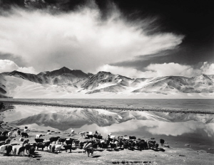 一臺(tái)古老而又沉重的相機(jī),和由它帶來(lái)的幾分笨拙而又充滿儀式感的觀看世界的方式,正好對(duì)應(yīng)了馮建國(guó)在中國(guó)西部尋夢(mèng)的心境。如今,馮建國(guó)常教導(dǎo)學(xué)生,“你所向往的東西就純粹地去做”?;蛟S是帕米爾高原千年冰山的呼喚,或許是塔克拉瑪干沙漠遠(yuǎn)古駝鈴的回響,還有青藏高原朝圣的腳步、誦經(jīng)的吟唱……印證了他對(duì)西部的無(wú)盡向往和與大畫幅黑白攝影的不解之緣。