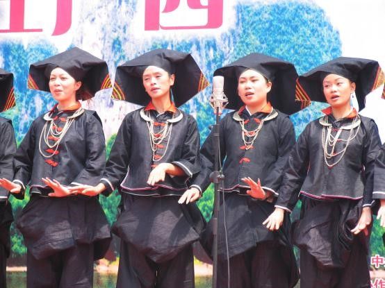 壯族傳統(tǒng)音樂(lè)主要是各種山歌曲調(diào),是產(chǎn)生于古代的詩(shī)歌、音樂(lè)、舞蹈三位一體的古老聲樂(lè)藝術(shù)。在壯族地區(qū),幾乎每個(gè)鄉(xiāng)都有幾個(gè)固定的曲調(diào),有用于敘事的平調(diào)、抒發(fā)歡快心情的喜調(diào)、平緩柔和細(xì)膩深沉的詩(shī)調(diào),富于教誨性的卜牙(老人)調(diào)和表現(xiàn)哀傷悲調(diào)等。曲式有支聲式、和聲式和復(fù)調(diào)式,用于獨(dú)唱、領(lǐng)唱、重唱、合唱的民歌調(diào)有相應(yīng)的曲式結(jié)構(gòu)。其中合唱又分為二聲部和三聲部。曲藝有末倫、唱師、比余等,唱師的唱本脫胎于經(jīng)詩(shī),一般為七言句式,以一鼓一鑼過(guò)門(mén),無(wú)伴奏。曲牌各地不一,每個(gè)地方一般由AB調(diào),比較固定。末倫流傳于桂西南地區(qū),來(lái)源于巫調(diào),發(fā)展成為曲藝。其詞為七言或五言,上下句式,以三弦伴奏,藝人自彈自唱,詞很優(yōu)美。內(nèi)容有說(shuō)故事、訴苦情、嘆離別等,可長(zhǎng)可短,形式靈活。比余流傳于紅水河中游東蘭、鳳山一帶,詞為長(zhǎng)短句,腰腳韻,寓言式或隱喻式,生動(dòng)活潑。演唱時(shí),藝人與聽(tīng)眾互相呼應(yīng),氣氛熱烈。