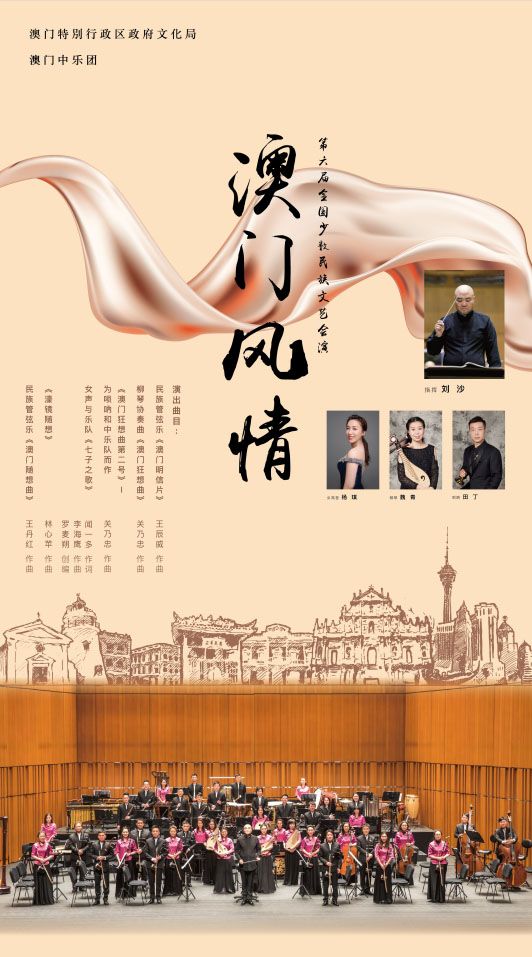 由澳門特別行政區(qū)政府文化局轄下澳門中樂團(tuán)精心構(gòu)思、傾情演繹的《澳門風(fēng)情》音樂會(huì),于9月11日亮相第六屆全國少數(shù)民族文藝會(huì)演,在央視網(wǎng)及國家民委門戶網(wǎng)站進(jìn)行網(wǎng)絡(luò)展播。