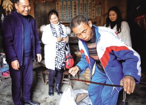 在村里修復(fù)舊屋的趙貢彩接到游客電話,馬不停蹄地趕回家中,自家手工制作的苕粉成了游客心心念念的香餑餑。拿出早已生銹的秤桿,一袋袋苕粉被游客搶著購買。“都是留著自家吃的,哪想著能賣出去喲?!毙χf罷,趙貢彩拿出手機(jī),微信一掃,錢款立即到賬。