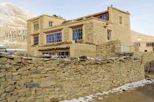 受地理氣候、歷史因素等影響,青海各傳統(tǒng)村落的人口密度、村域面積和村民從事的主業(yè)等各不相同。同一地區(qū)各村落之間雖然地貌特征大致相同,但因局部的植被條件存在差異,所以民居建筑的內(nèi)部結(jié)構(gòu)及木材用量上稍有差異。東部農(nóng)業(yè)區(qū)人口密度相對較大,一個自然村分建為兩到三個行政村。這些村落通常有著共同的祖先、共同的風俗習慣以及共同祭祀的山神和共同供奉的寺廟。而青南地區(qū)的一個行政村下轄5至7個自然村,轄區(qū)面積約300至500平方公里,有兩三座寺院。山水地貌、拉則(神山祭祀臺)、經(jīng)幡、寺院、佛塔、石經(jīng)墻及錯落有致的碉樓民居建筑,構(gòu)成了一個有機的整體,是青藏高原傳統(tǒng)村落不可或缺的組成部分。