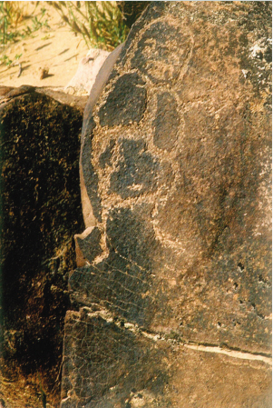 在寧夏各地的巖畫中,還發(fā)現(xiàn)了一些抽象的,由點、線、溝槽等組成的符號和圖形,研究者對于它們的意義至今未能給出定論,這些神秘又獨特的巖畫即被稱為符號巖畫。在文字出現(xiàn)前的原始社會,先民的記事方法大致包括物件記事、圖畫記事、符號記事三種。其中圖畫記事和符號記事在巖畫中很豐富,有些巖畫的符號圖形就屬于符號記事的一種。雖然創(chuàng)作者要表現(xiàn)的內(nèi)容和思想我們無法得知,但是符號巖畫仍然是我們了解和研究原始先民生活、生產(chǎn)不可或缺的資料和遺存。