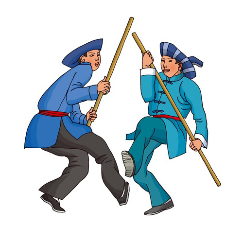 彝族(公雞啄架):彝族有6572173人,分布在四川、云南、貴州、廣西四省市、區(qū)。傳統(tǒng)的體育項(xiàng)目有摔跤、磨秋、蹲斗、舞鈴鐺、跳火繩、玩場、頂扁擔(dān)、頂肩等。