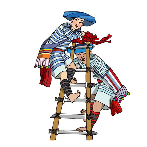 傈僳族(上刀桿):傈僳族有574856人,聚居在云南省怒江傈僳族自治州,迪慶、德宏等州亦有分布。傈僳族傳統(tǒng)體育項(xiàng)目是射弩,蕩秋千、過溜、摔跤、快速砍竹子、上刀桿、泥彈弓、溜索、游泳等。