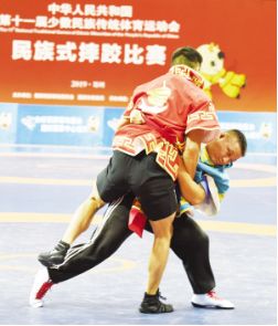⑦云南隊選手在陀螺男子團體賽中郭浩攝