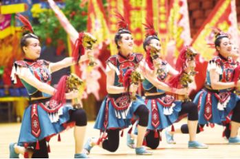 ?、拗貞c隊表演項目《土家銅鈴勁逮逮》 王京廣攝