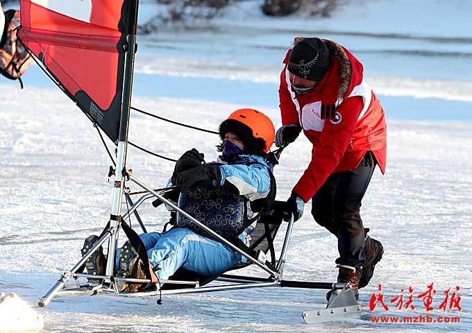 當(dāng)?shù)厝罕婓w驗冰帆運動的無限樂趣。