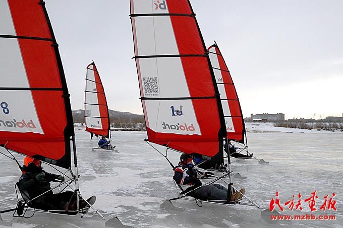 2020年1月2至3日,東極船奇·全國冰上帆船公開賽在黑龍江省撫遠(yuǎn)市濱江公園黑龍江水域舉辦。來自全國8個城市的帆船愛好者以及撫遠(yuǎn)當(dāng)?shù)氐纳习倜罕妳⒓恿舜舜伪荣悺?/p>