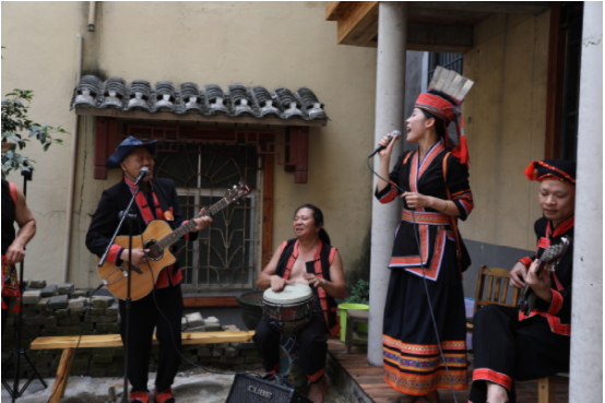 瑤族民間樂團(tuán)——七彩鄉(xiāng)音全天候?yàn)橛慰脱莩矛幾鍌鹘y(tǒng)音樂元素創(chuàng)作的歌曲