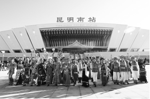 云南探索“高鐵沿線創(chuàng)建聯(lián)盟”等創(chuàng)新做法,全面深入持久開(kāi)展民族團(tuán)結(jié)進(jìn)步創(chuàng)建工作。圖為各族群眾在慶祝高鐵開(kāi)通儀式上載歌載舞。云南省民宗委供圖