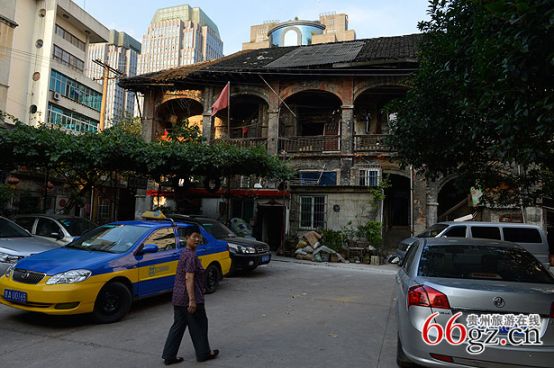 在中華北路主大街中段,穿過一個(gè)百米左右的小巷子,沿著一個(gè)小斜坡往上,盡頭一個(gè)寬敞的大院子就是“毛公館”。但是比起貴陽(yáng)現(xiàn)存的其他民國(guó)建筑,“毛公館”顯得殘破不堪。如今的大院已看不出任何歷史文化古跡的痕跡,“毛公館”周邊已經(jīng)被兩個(gè)小高層建筑包圍,大院邊是一棟富麗堂皇的銀行辦公大樓和一棟證券大樓,相比起來,“毛公館”的存在顯得與這個(gè)城市格格不入。