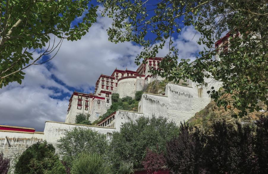 今天,人們眼中的布達拉宮,不論是它石木交錯的建筑方式,還是從宮殿本身所蘊藏的文化內(nèi)涵看,都能感受到它的獨特性。它似乎總能讓到過這里的人留有深刻的印象。統(tǒng)一花崗石的墻身;木制屋頂及窗檐的外挑起翹設(shè)計;全部的銅瓦鎏金裝飾,以及由經(jīng)幢、寶瓶、摩羯魚、金翅鳥做脊飾的點綴……這一切完美配合使整座宮殿顯得富麗堂皇。