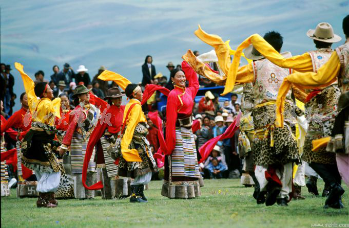 到17世紀(jì)中葉,“雪頓”活動(dòng)內(nèi)容更加豐富,已開始演出藏戲,并以哲蚌寺為活動(dòng)中心開展活動(dòng),故又稱之為“哲蚌雪頓”,從此便形成了固定的雪頓節(jié)。五世達(dá)賴羅桑嘉措從哲蚌寺移居布達(dá)拉宮后,每年藏歷六月三十日,首先在哲蚌寺舉行藏戲匯演,次日則必須赴布達(dá)拉宮演出。18世紀(jì)下半葉羅布林卡(寶貝圓林)建成,達(dá)賴?yán)镆凭恿_布林卡,雪頓節(jié)的活動(dòng)又從布達(dá)拉宮轉(zhuǎn)移到羅布林卡。每年藏歷七月一日,由拉薩、日喀則、窮吉、雅礱、堆龍德慶、尼木等地的藏劇團(tuán),6個(gè)“扎西雪巴”(藏戲的一種)戲班子,一個(gè)牦牛舞班子和一個(gè)“卓巴”(打鼓舞隊(duì)),在羅布林卡進(jìn)行聯(lián)合演出。屆時(shí),噶廈政府機(jī)關(guān)放假,全體官員要集中到羅布林卡陪同達(dá)賴?yán)镉^看藏戲,中午噶廈政府要專門設(shè)宴招待全體官員,席間不能缺少酸奶,以示對節(jié)日由來的紀(jì)念。在此期間,允許拉薩市民及附近藏族群眾進(jìn)入羅布林卡觀看藏戲演出,這便逐漸形成了一整套固定的節(jié)日儀式。雪頓節(jié)經(jīng)過了300多年的發(fā)展歷史,從宗教節(jié)日演化為藏戲藝術(shù)節(jié)。故此,現(xiàn)代人把雪頓節(jié)稱之為“藏戲節(jié)”。