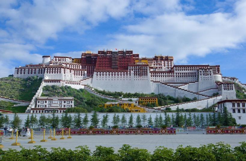 今天,人們眼中的布達拉宮,不論是它石木交錯的建筑方式,還是從宮殿本身所蘊藏的文化內(nèi)涵看,都能感受到它的獨特性。它似乎總能讓到過這里的人留有深刻的印象。統(tǒng)一花崗石的墻身;木制屋頂及窗檐的外挑起翹設(shè)計;全部的銅瓦鎏金裝飾,以及由經(jīng)幢、寶瓶、摩羯魚、金翅鳥做脊飾的點綴……這一切完美配合使整座宮殿顯得富麗堂皇。