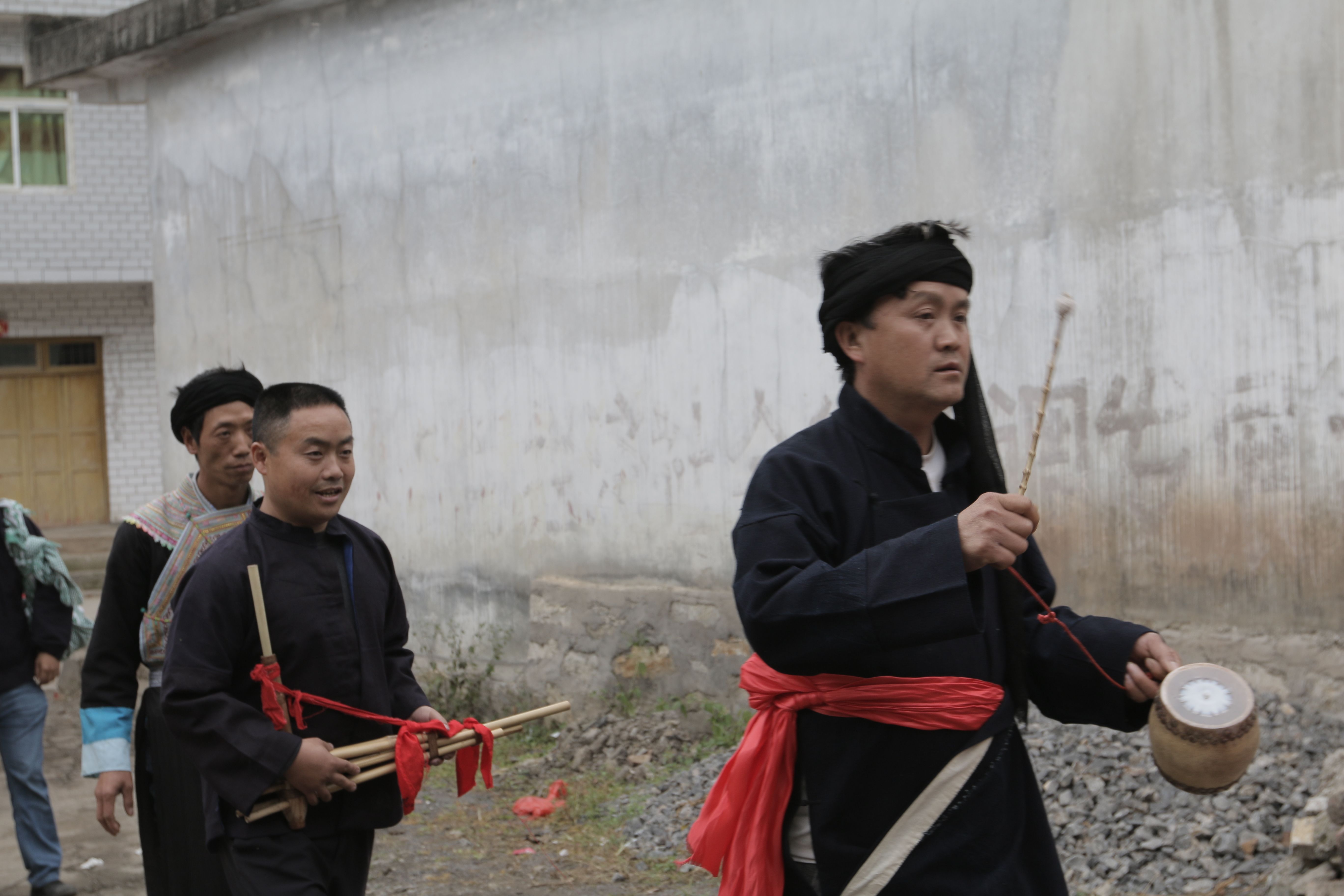 圖片名稱:貴州貴陽苗族婚禮上的奏樂