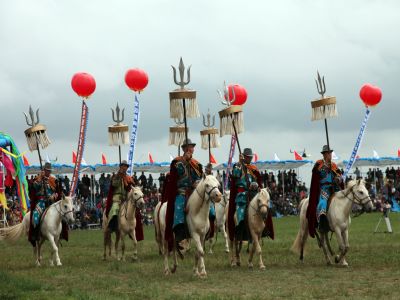 圖片說明:蒙古族體育比賽馬隊進場