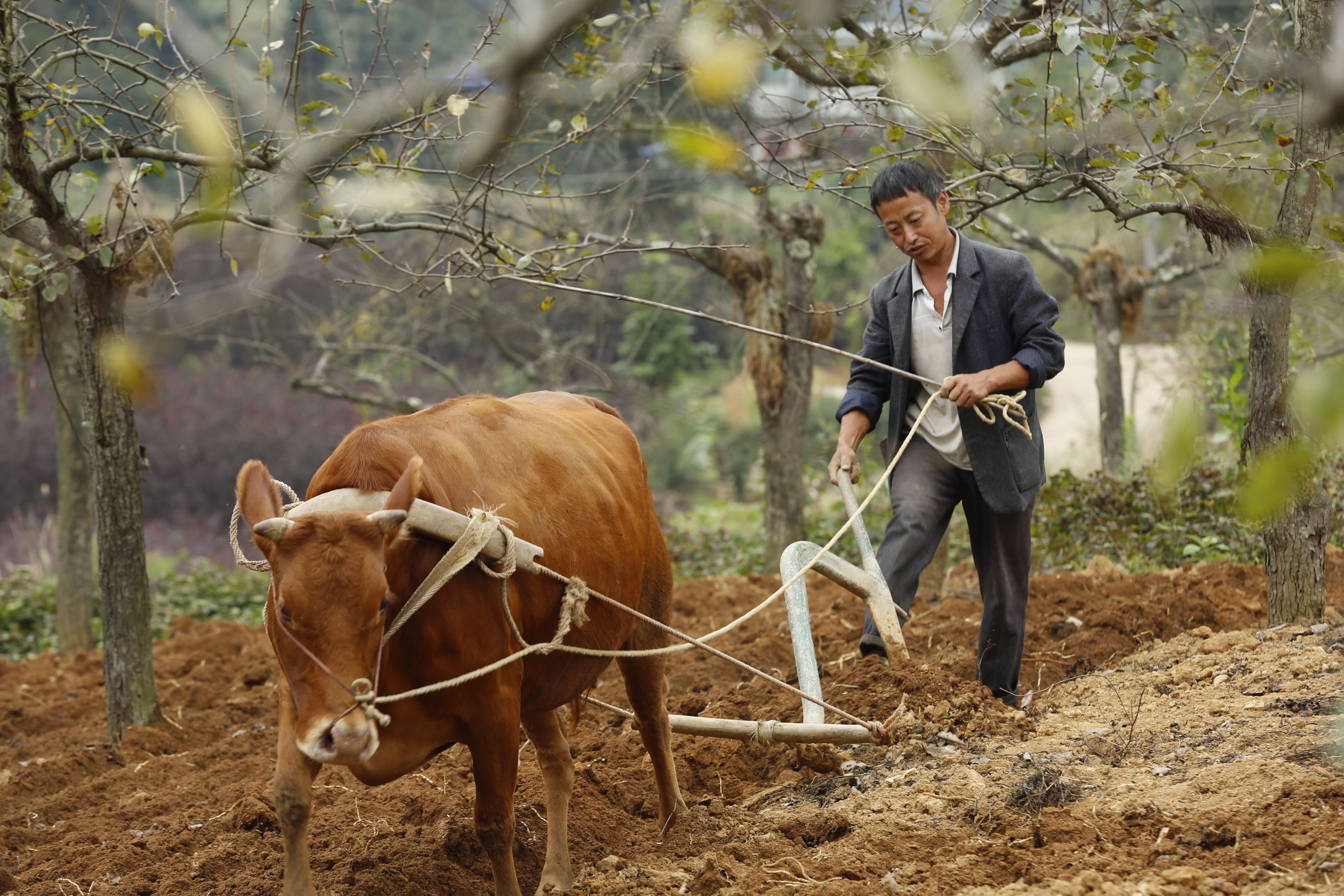 貴州貴陽(yáng)苗族農(nóng)作物種植-牛耕田